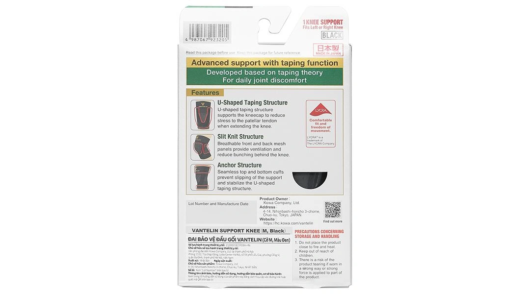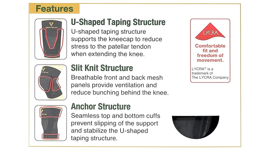 Đai đầu gối Vantelin Knee Support có tác dụng ngăn chặn chuyển động quá mức của các khớp và cung cấp lực nén cho cơ nhờ các cấu trúc: